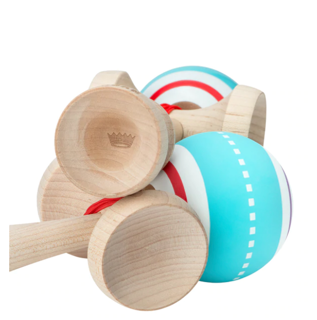 The Logan Tosta pro model kendama will help your tricks take flight like never before. This university blue and varsity red tama is inspired by after Logan's favorite team jersey; the Sactown Kings, as well as his passions for basketball and kendama.
