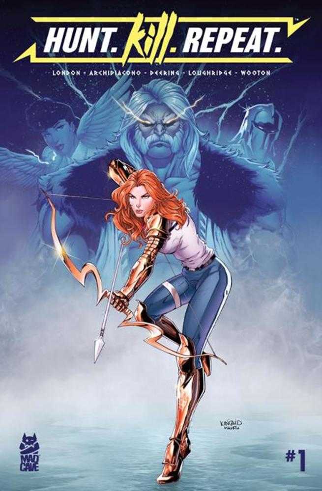 It's Kill Bill meets Clash of the Titans in Hunt. Kill. Repeat. The all-new, action packed series by Mark London (Battlecats, Knights of the Golden Sun). When the Greek gods invade Earth, society is quickly forced to comply with their new rulers. However, one god, Artemis, rejects her brethren's ideology and has found solace in the love of a mortal. When she is called to Olympus to answer for her betrayal, the gods strip away her godly powers and leave her for dead. Now, ten years later, Artemis is on a quest for revenge to confront her father, Zeus, for taking away everything she ever loved.   Hunt. Kill. Repeat. is an all-new original series by Mark London (Battlecats, Knights of the Golden Sun) with art by the dynamic Francesco Archidiacono, colors by all-star Lee Loughridge (Deadly Class, The Good Asian) and covers by Ryan Kincaid and Marguerite Sauvage.