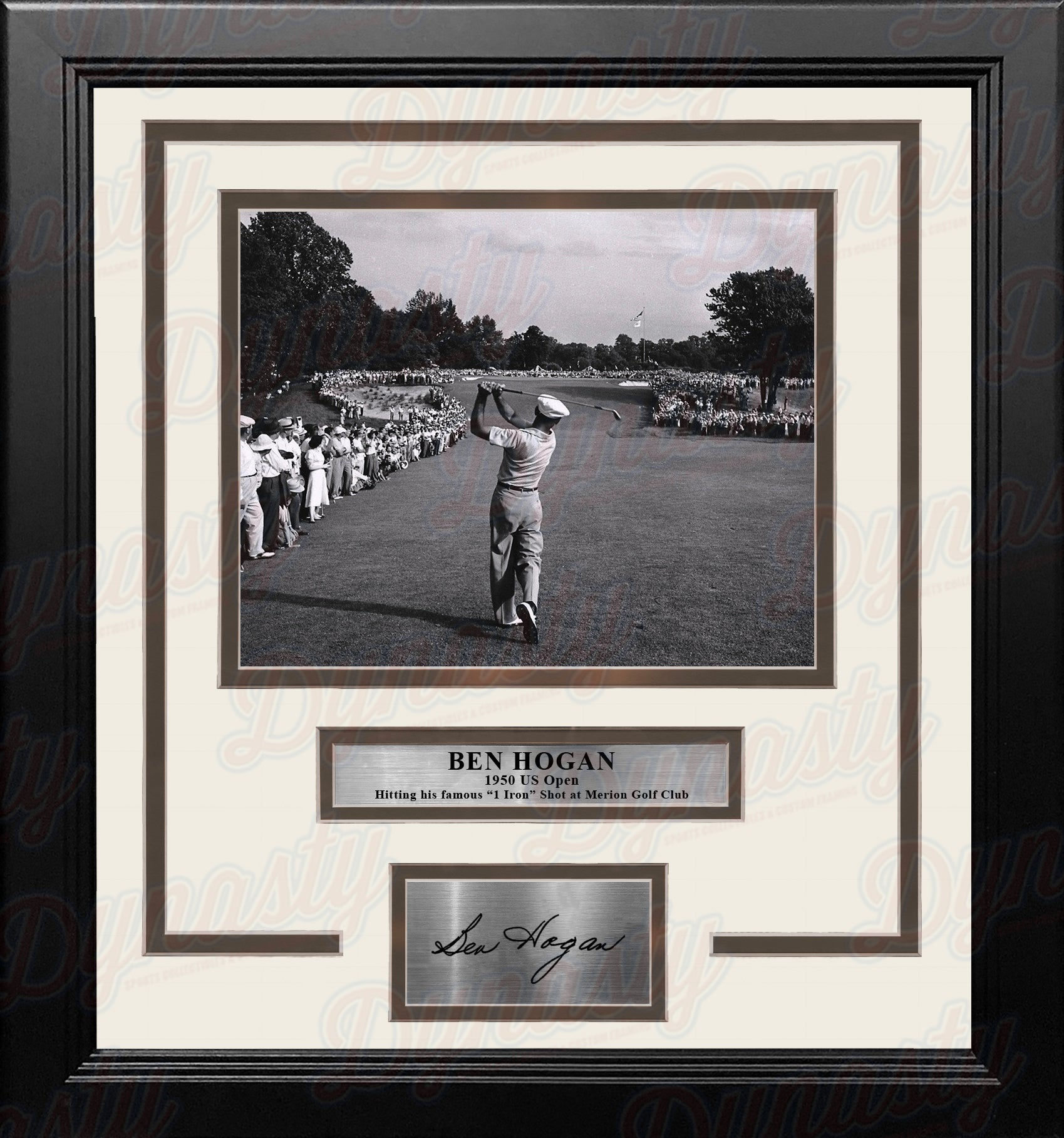 Ben Hogan 1-Iron Shot at the 1950 US Open at Merion Framed Golf Photo with Engraved Autograph