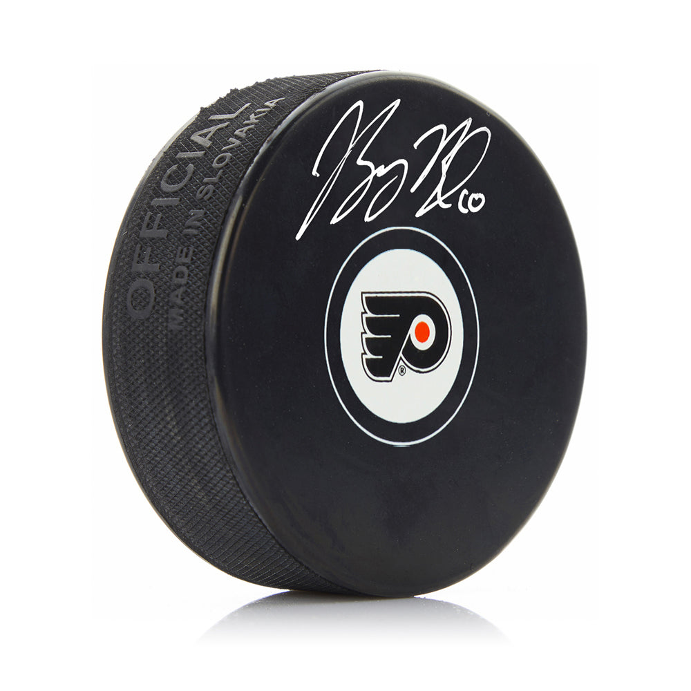 Official NHL logo hockey puck signed by Flyers star Bobby Brink; authenticated by Dynasty Sports