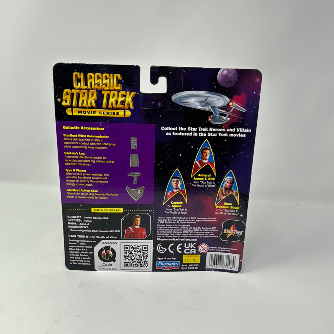 From Playmates. The first figure wave in the Playmates Star Trek 5-Inch Action Figure line includes fan favorites from Star Trek II: The Wrath of Khan! These 5-inch figures feature 14 points of articulation and include retro accessories and a figure stand, all in retro packaging that recreates the 90's Playmates Star Trek: TNG products! With Wrath of Khan TNG celebrating its milestone 40th-anniversary in June 2022, collectors won't want to miss out on these all new figures! Collect Admiral James T. Kirk, Captain Spock, and Khan Noonian Singh.