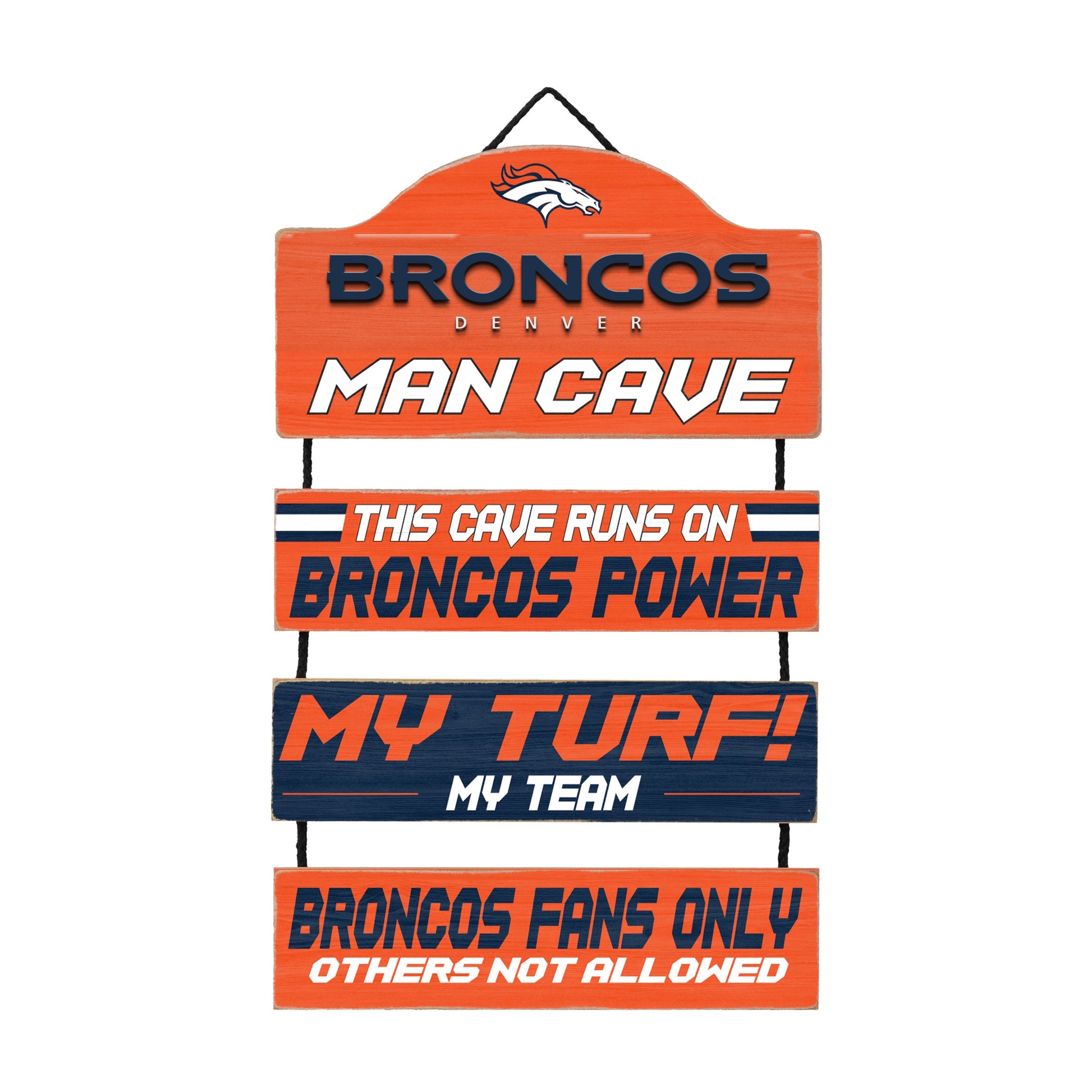 If you're looking to refresh your sports-themed room, office space, and caves, to look no further. This Man Cave Dangle Sign will catch anyone's attention! Featuring your favorite team logo, helmet, and colors, this 4-panel wood sign will be a great addition to your already expanding collection!
