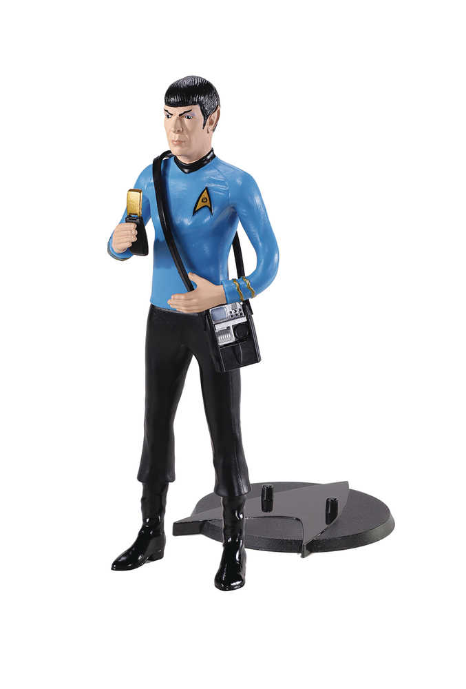 From The Noble Collection. A Toyllectible line of figures with highly-detailed sculpts feature a bendable form factor to pose and display! Each Star Trek Bendy figure includes real cloth clothing and comes with character specific accessories, plus a removable display stand. Measures approximately 7" tall. Collect Kirk, McCoy, Uhura and Spock.
