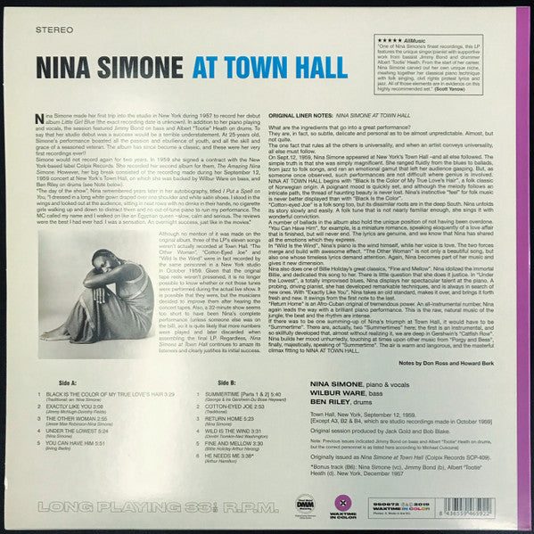 Nina Simone – Nina Simone At Town Hall 180G Purple Color Vinyl LP Record