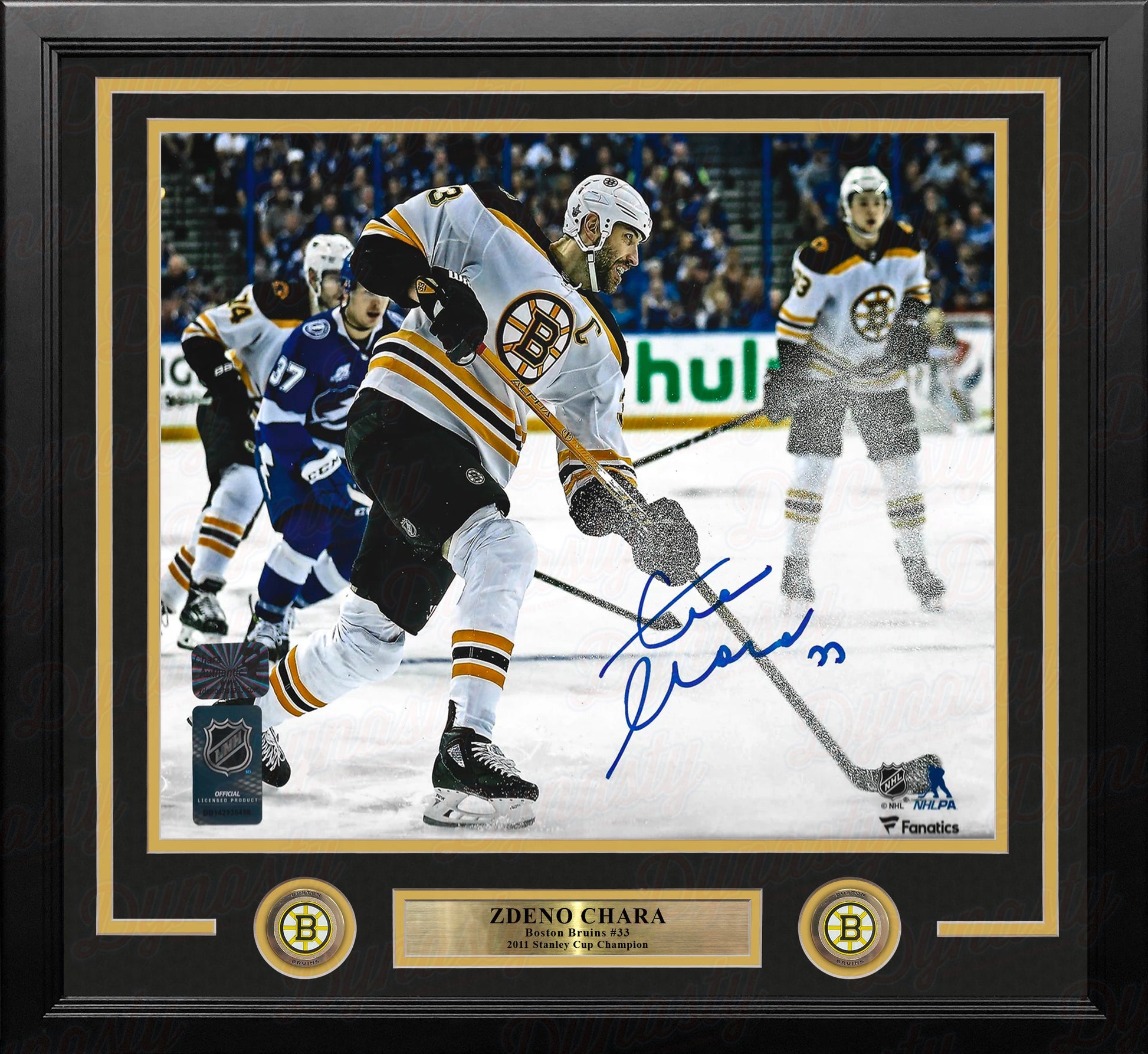 This officially licensed hockey photo has been hand-signed by Bruins hockey legend Zdeno Chara. It has been authenticated by Dynasty Sports a Zdeno Chara player hologram during a public autograph appearance